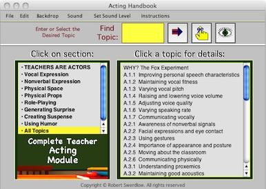 This ACTING ROLE MODULE runs on Macintosh and Personal (Windows) Computers